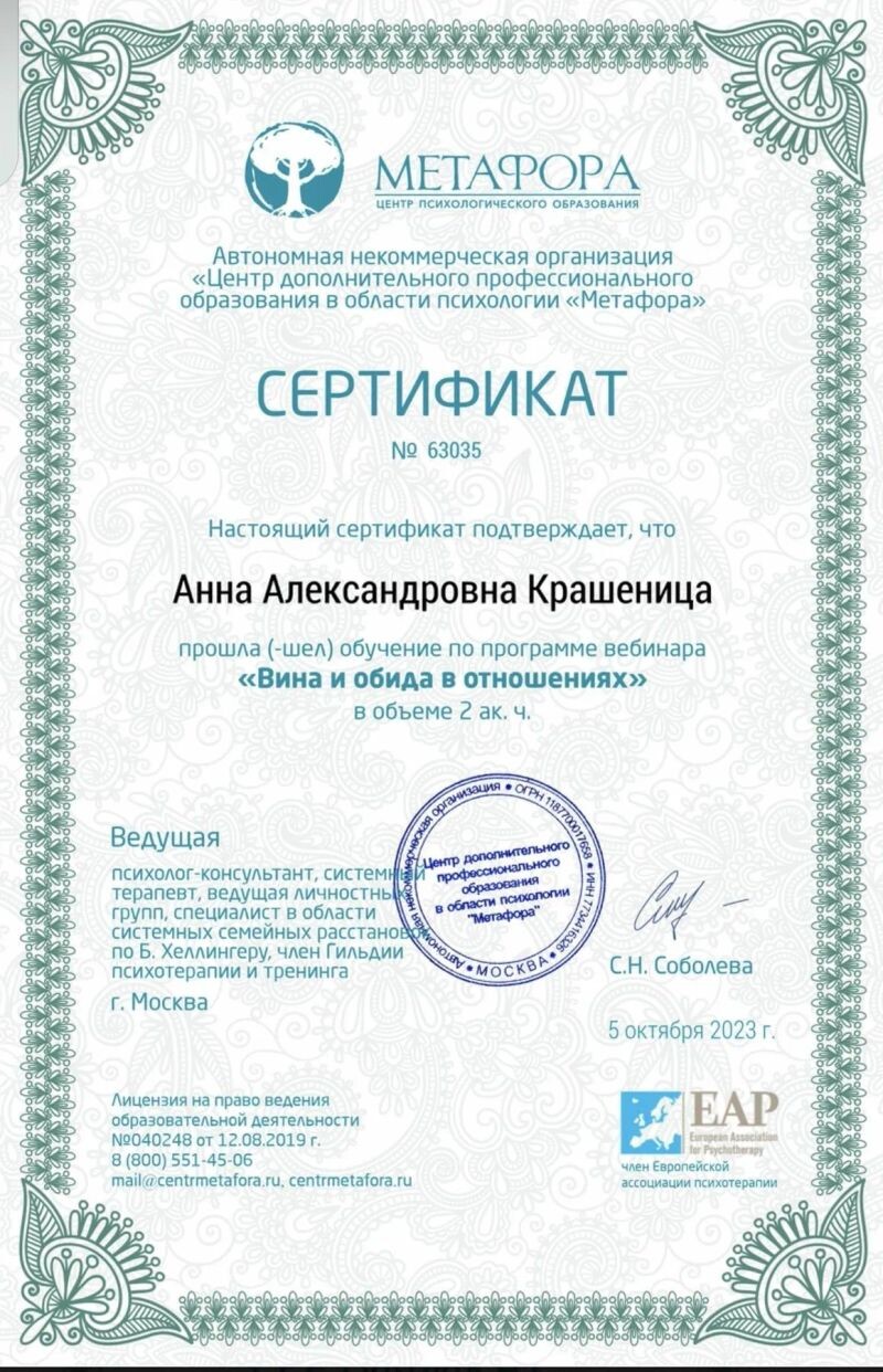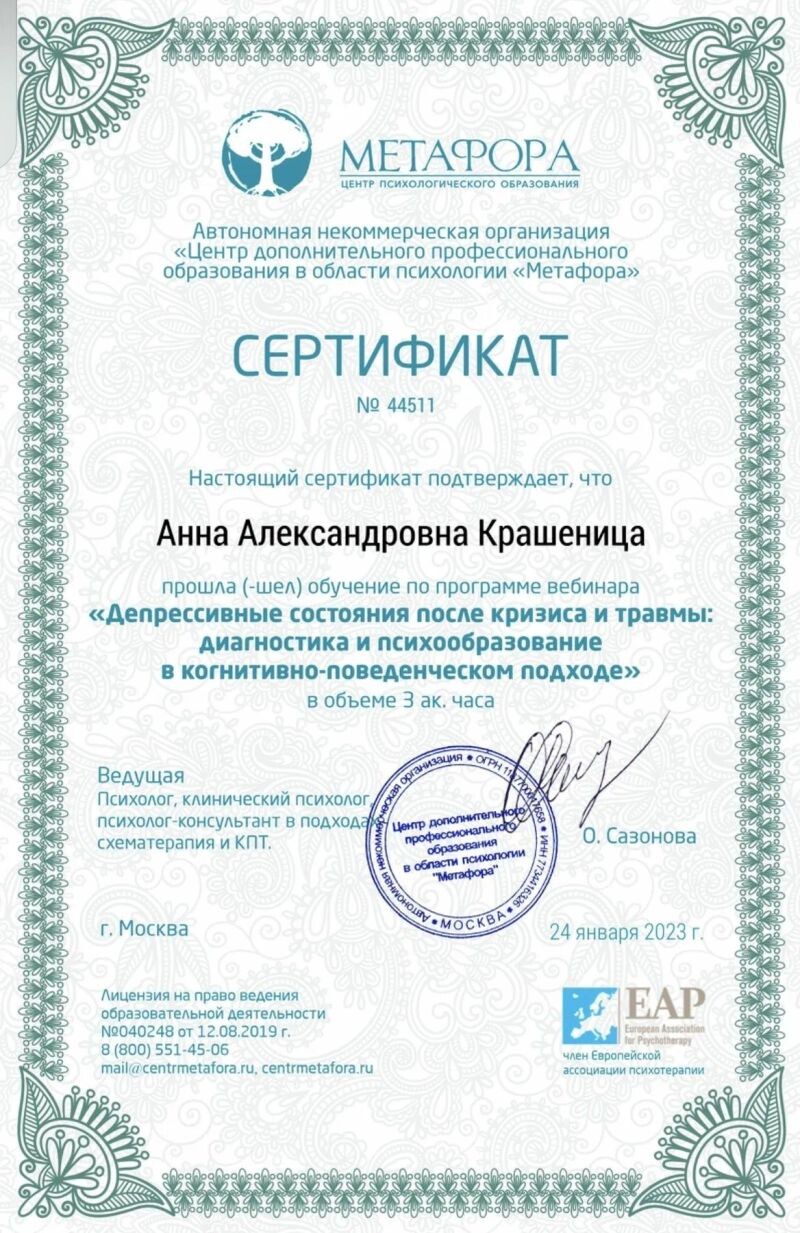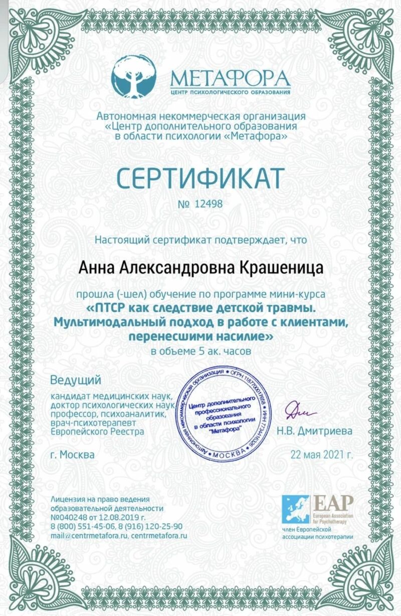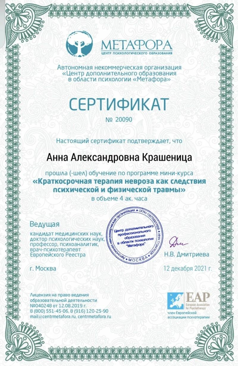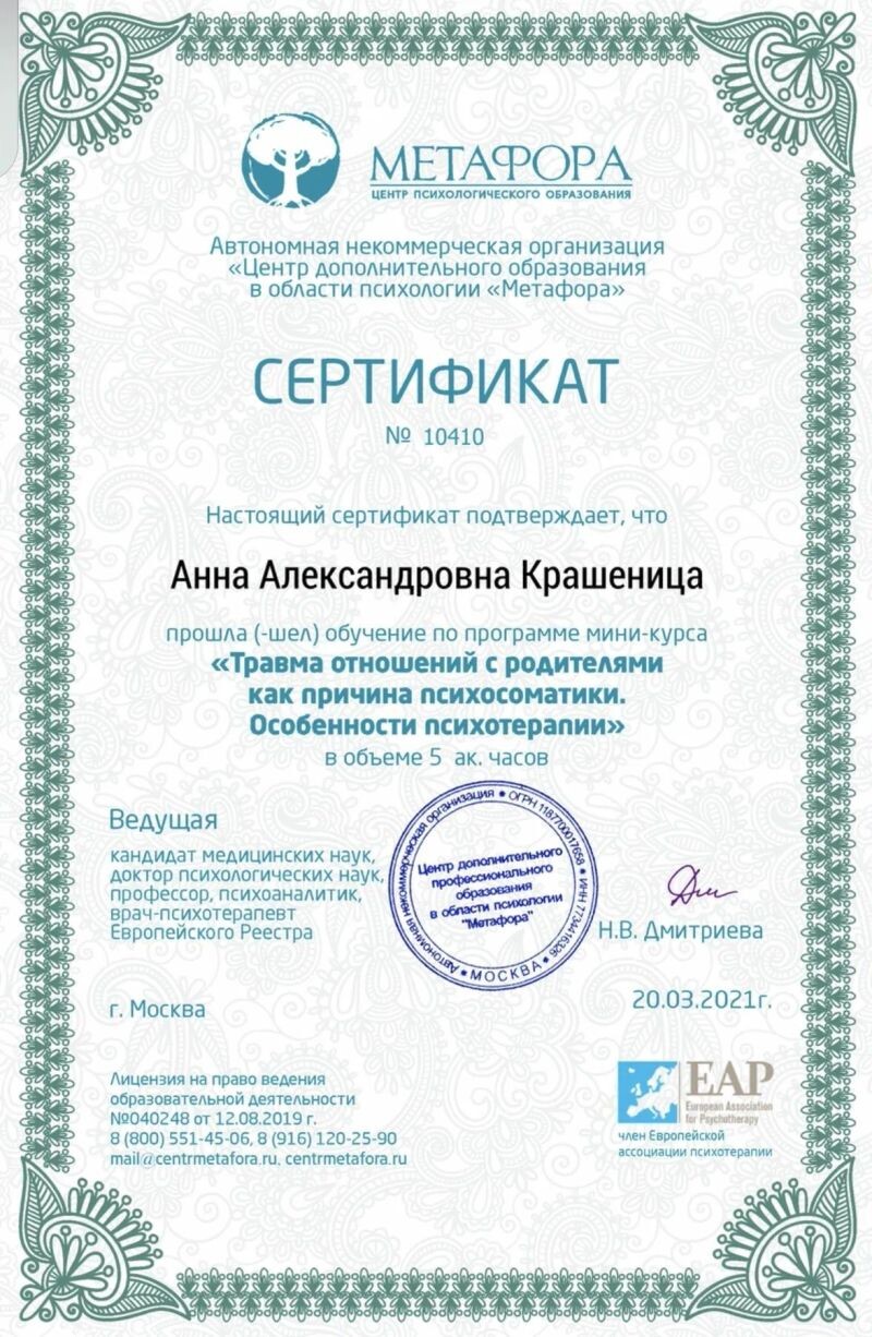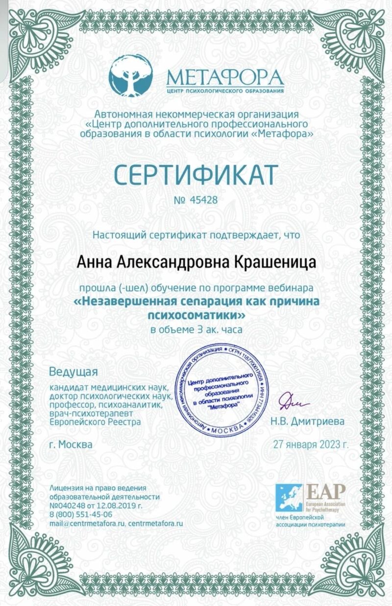 ► Связаться с Крашеницой Анной Александровной можно за пару минут. Нажмите на кнопку «Связаться со специалистом» и заполните короткую форму.