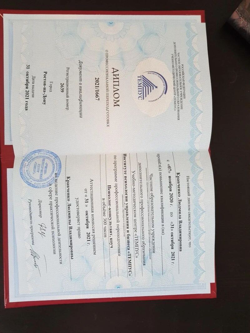 - ЧОУДПО Институт психологии управления и бизнеса" Темпус", Психолог-консультант, коуч, 2020–2021 гг.
