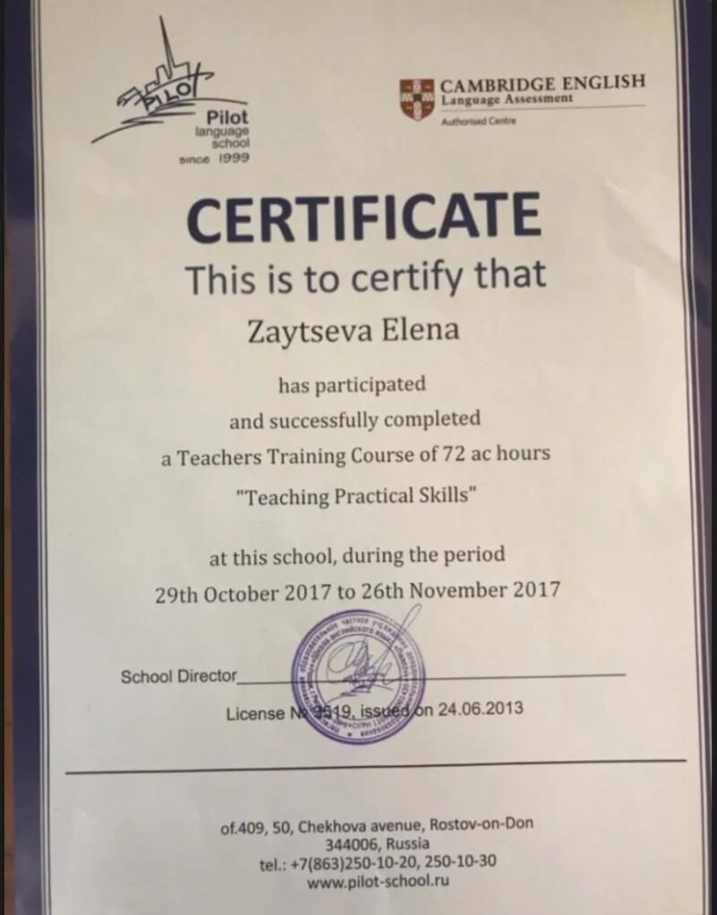 - Курс для преподавателей Teaching Practical Skills, 2017 г.