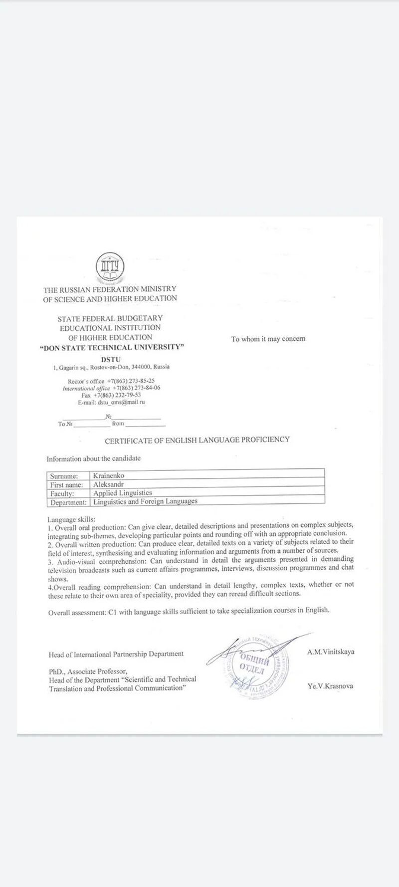 ► Крайненко Александр Максимович осуществляет выезд: Пролетарский, а также проводит дистанционные занятия в онлайн-формате.