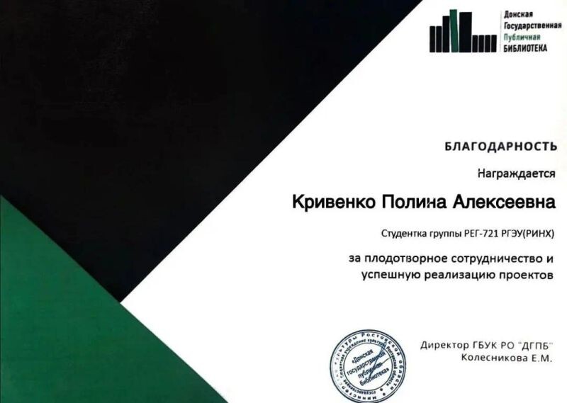 ► Кривенко Полина Алексеевна проводит занятия территориально: г. Ростов-на-Дону, а также дистанционно в онлайн-формате.
