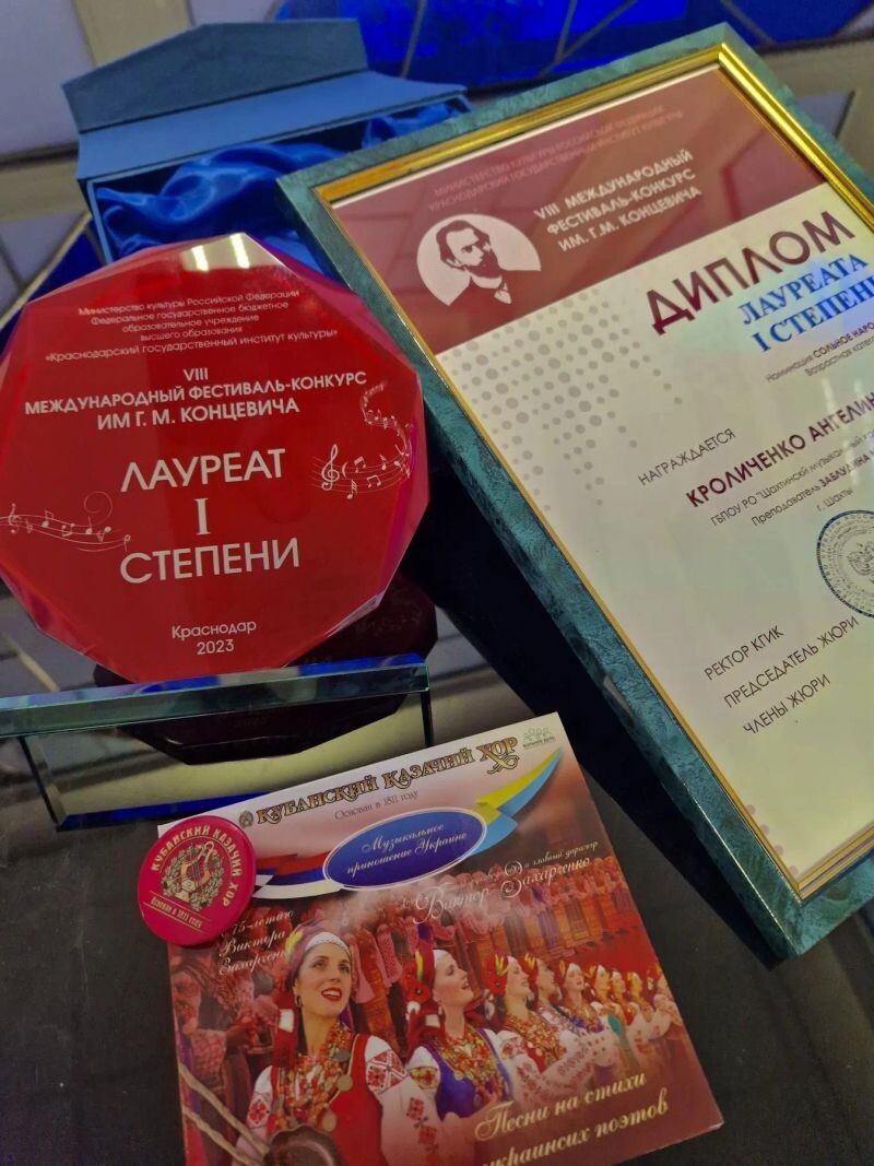 - VIII Международный фестиваль-конкурс им. Г.М. Концевича, лауреат I степени, 2023 г.