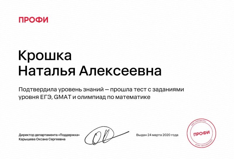 - Подтвердила уровень знаний — Прошла тест с заданиями уровня ЕГЭ, GMAT и олимпиад по математике (с 2020 г.).