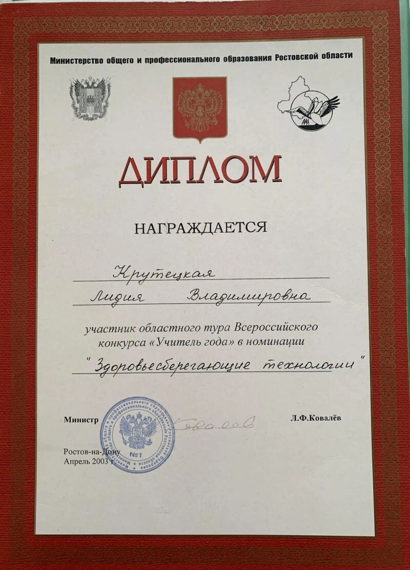 - Победитель городского педагогического конкурса «Учитель года», диплом 3 степени, 2003 г.