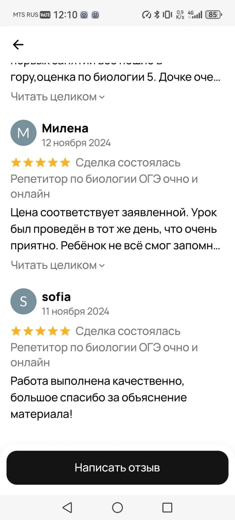 - Биология 600 ₽ за часРассказываю не только школьную программу
