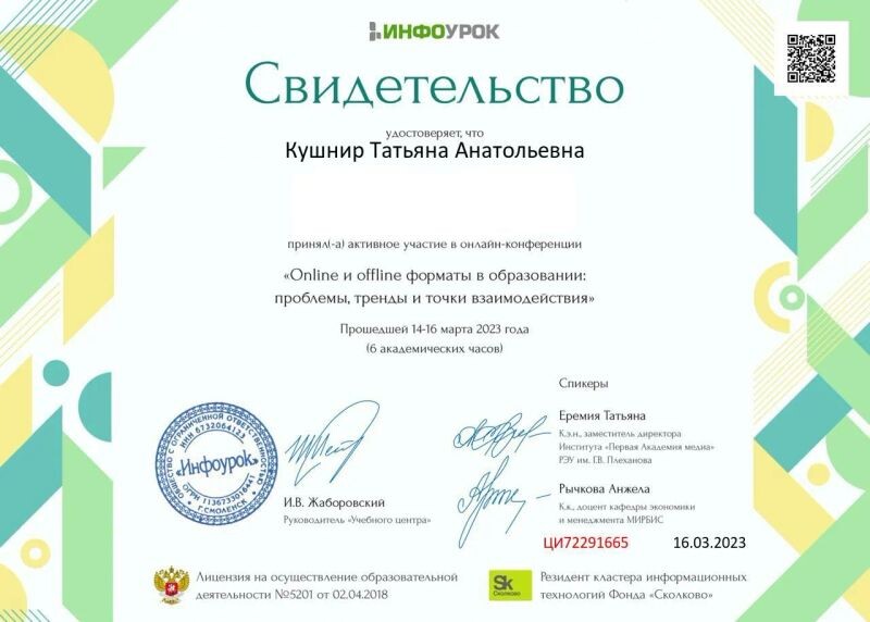 - «Online и offline форматы в образовании: проблемы, тренды и точки взаимодействия» (с 2023 г.).