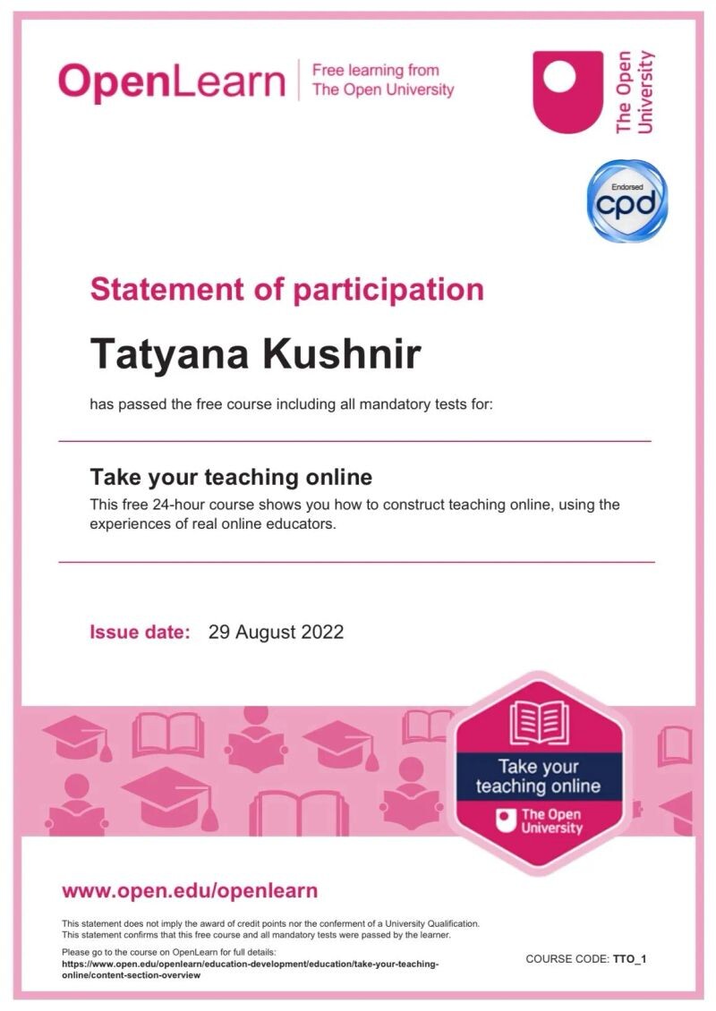 ► Кушнир Татьяна Анатольевна проводит занятия территориально: г. Ростов-на-Дону, а также дистанционно в онлайн-формате.