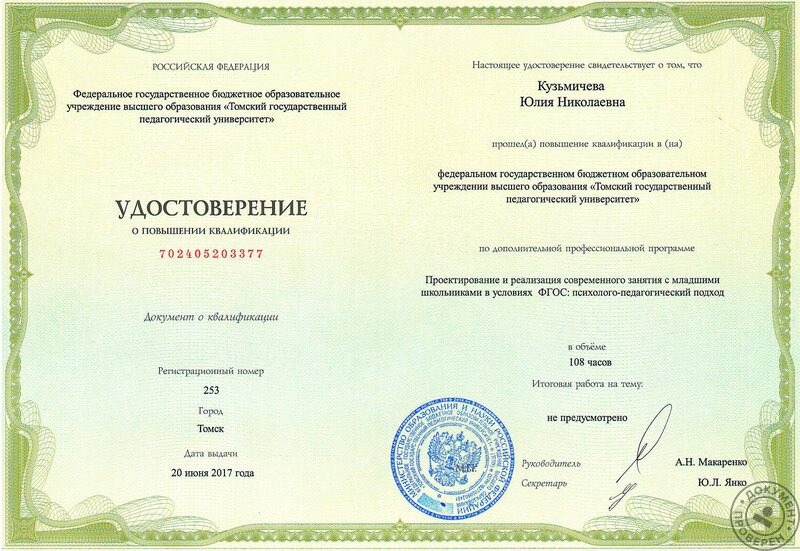 Юлия Николаевна была нашим преподавателем и мы очень благодарны ей за помощь на старте обучения. Благодаря ей, мы уверенно ступили на первую ступень учебного пути и пошли в первый класс.