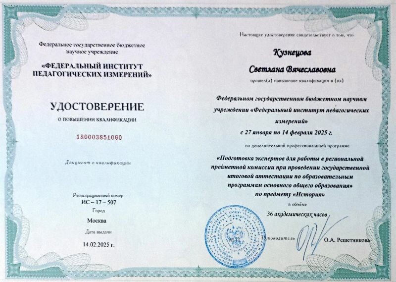 - Федеральный институт педагогических измерений, подготовка экспертов для работы в региональной предметной комиссии при проведении государственной итоговой аттестации, история, 2025 г.