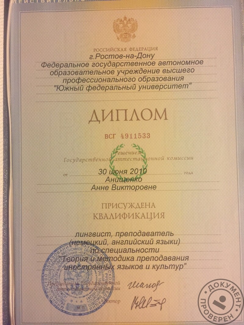 - ПИ ЮФУ, факультет лингвистики и словесности, 2005–2010 гг.