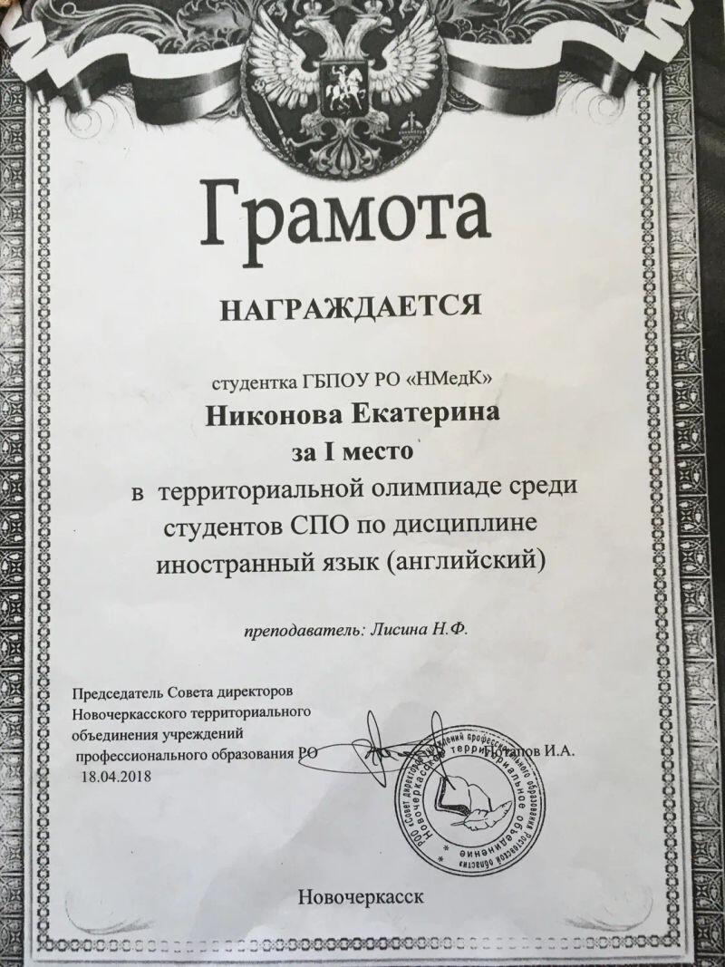 - Ростовский-на-Дону государственный педагогический институт, квалификация – преподаватель английского и немецкого языка (1981 г.).