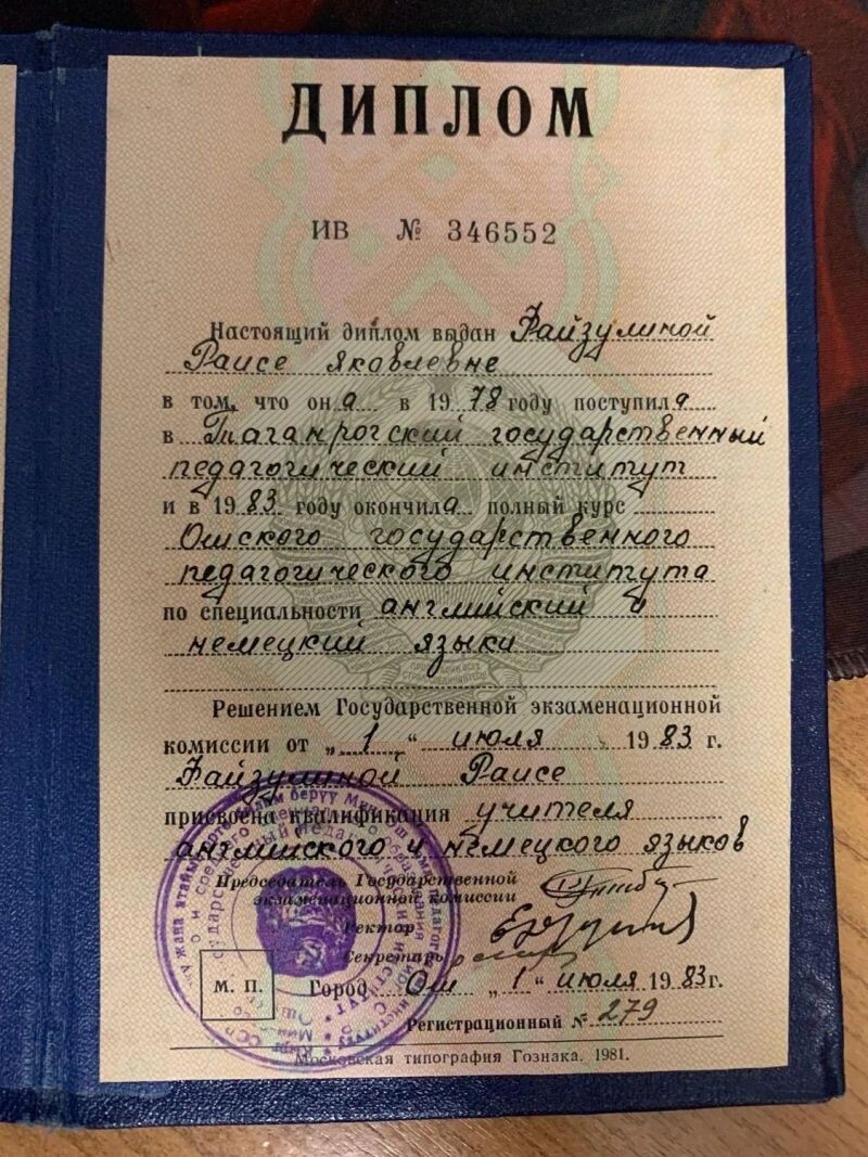 - Таганрогский государственный педагогический институт (ТГПИ), учитель английского и немецкого языков, 1978–1983 гг.