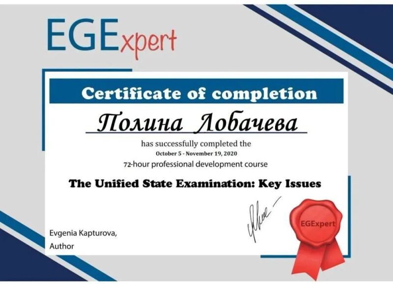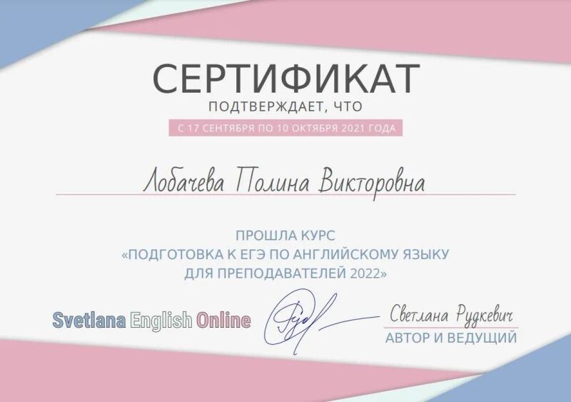 ► Связаться с Лобачевой Полиной Викторовной можно за пару минут. Нажмите на кнопку «Связаться с репетитором» и заполните короткую форму.