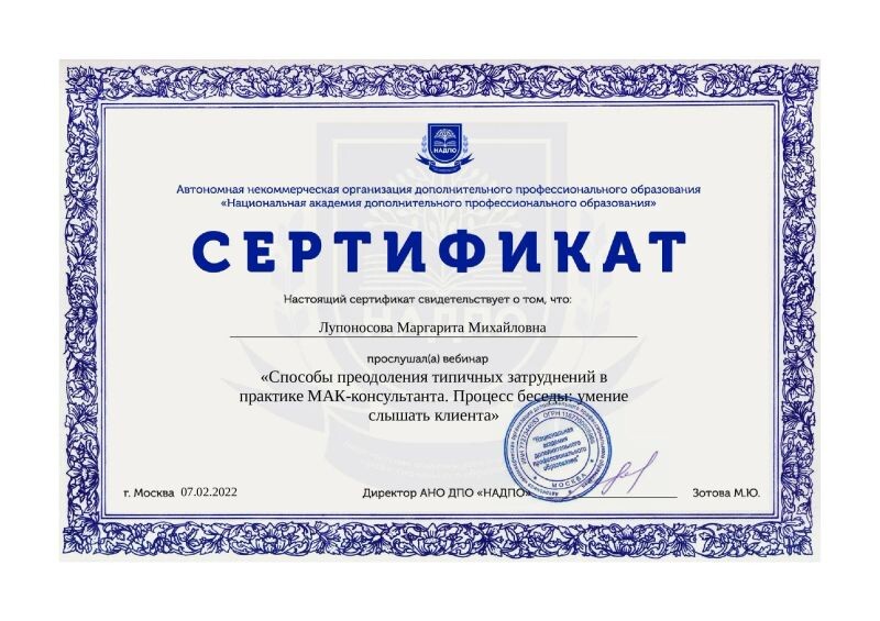 ► Связаться с Лупоносовой Маргаритой Михайловной можно за пару минут. Нажмите на кнопку «Связаться со специалистом» и заполните короткую форму.