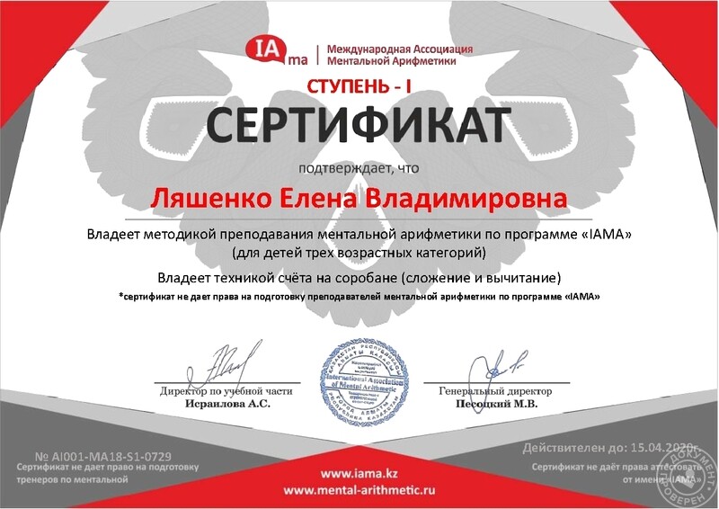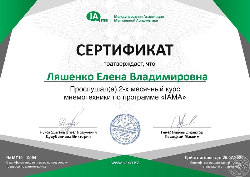 - Детский центр, тренер ментальной арифметики, скорочтения — 2 года.