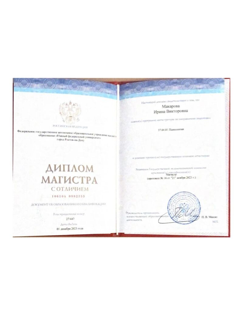 - Южный федеральный университет, психология, магистр, 2021–2023 гг.