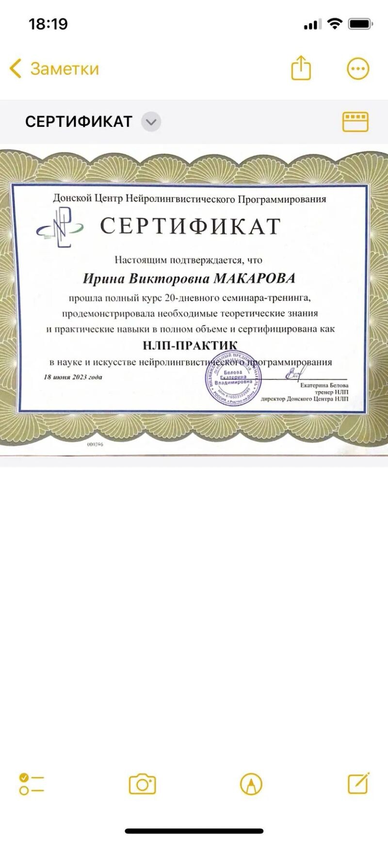 - Донской центр нейролингвистического программирования, НЛП-практик, 2022–2023 гг.