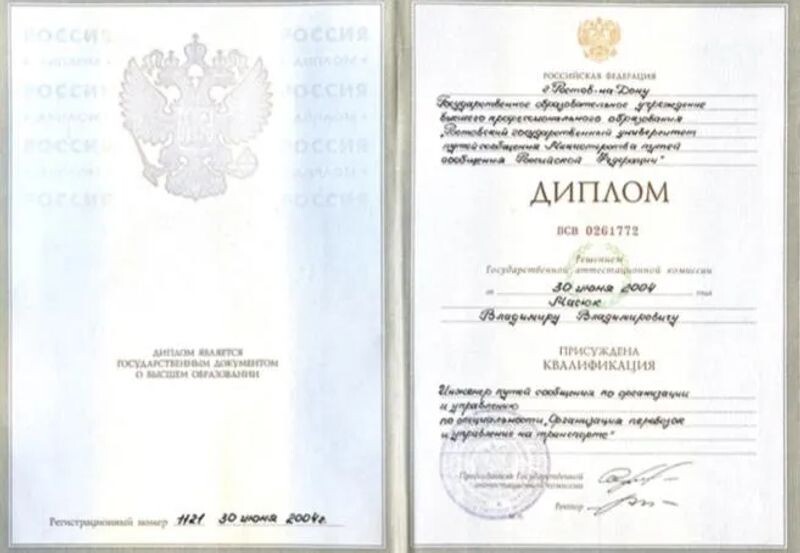 - Ростовский государственный университет путей сообщения, инженер путей сообщения по организации и управлению, 1999–2004 гг.