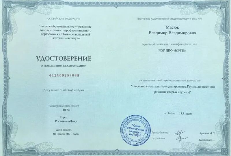 - Южно-региональный гештальт-институт, введение в гештальт-консультирование, 2020–2021 гг.