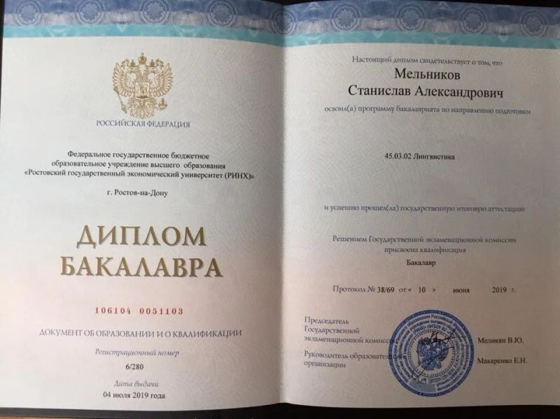 - РГЭУ (РИНХ), факультет лингвистики и журналистики, лингвистика, 2015–2019 гг.