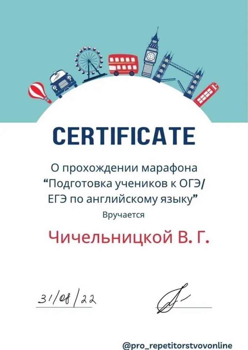 - Pro_repetitorstvovonle, марафон «Подготовка учеников к ОГЭ/ЕГЭ по английскому языку», 2022 г.