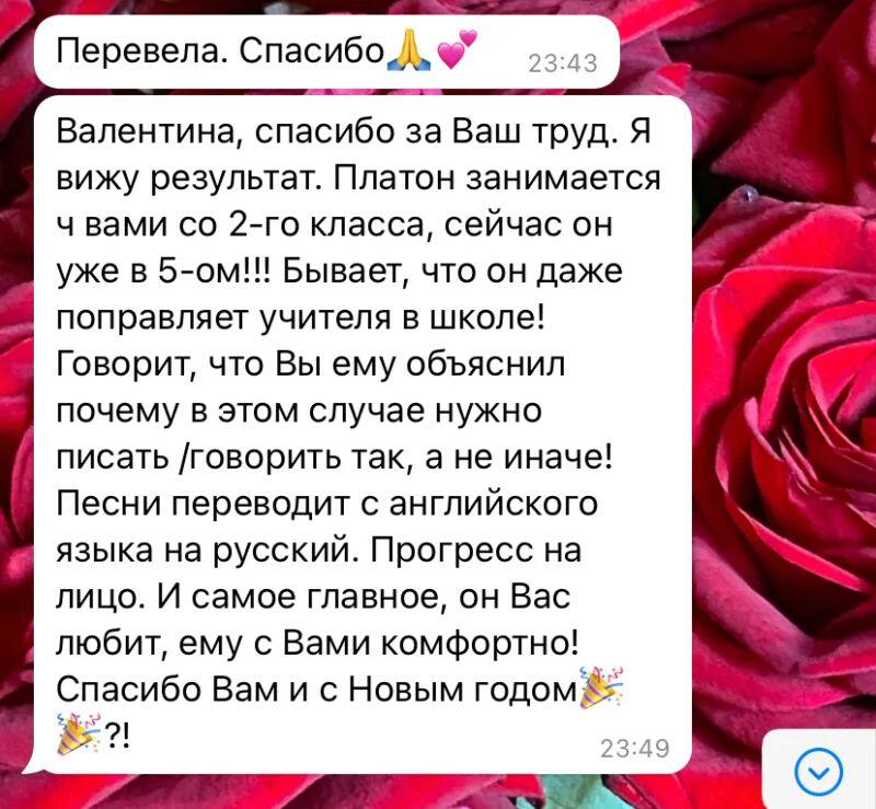 Мой ребенок с удовольствием учится с Валентиной. Уроки интересны и доступны. Мы будем продолжать изучать английский с ее помощью