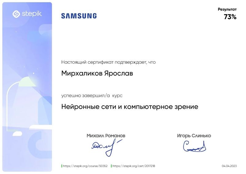 - Samsung, курс «Нейронные сети и компьютерное зрение», 2023 г.