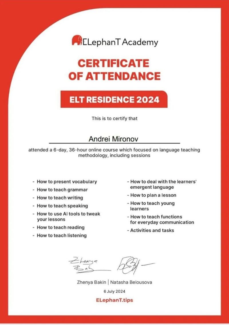 - Elephat Academy, ELT Residence 2024.