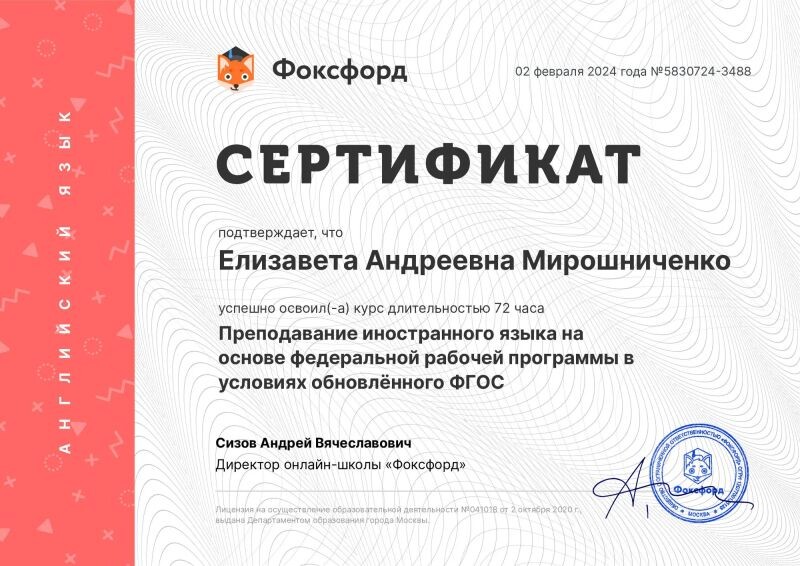 - Онлайн-школа "Фоксфорд" Преподавание инностранного языка на основе федеральной рабочей программы в условиях обновленного ФГОС (с 2024 г.).