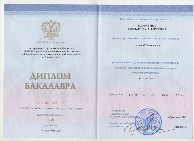 - Федеральное государственное бюджетное образовательное учреждение высшего образования "Донской государственный технический университет" Кваливикация: Бакалавр. 45.03.02 Лингвистика Профиль образовательной программы: Теория и методика преподавания иностран, 2017–2021 гг.