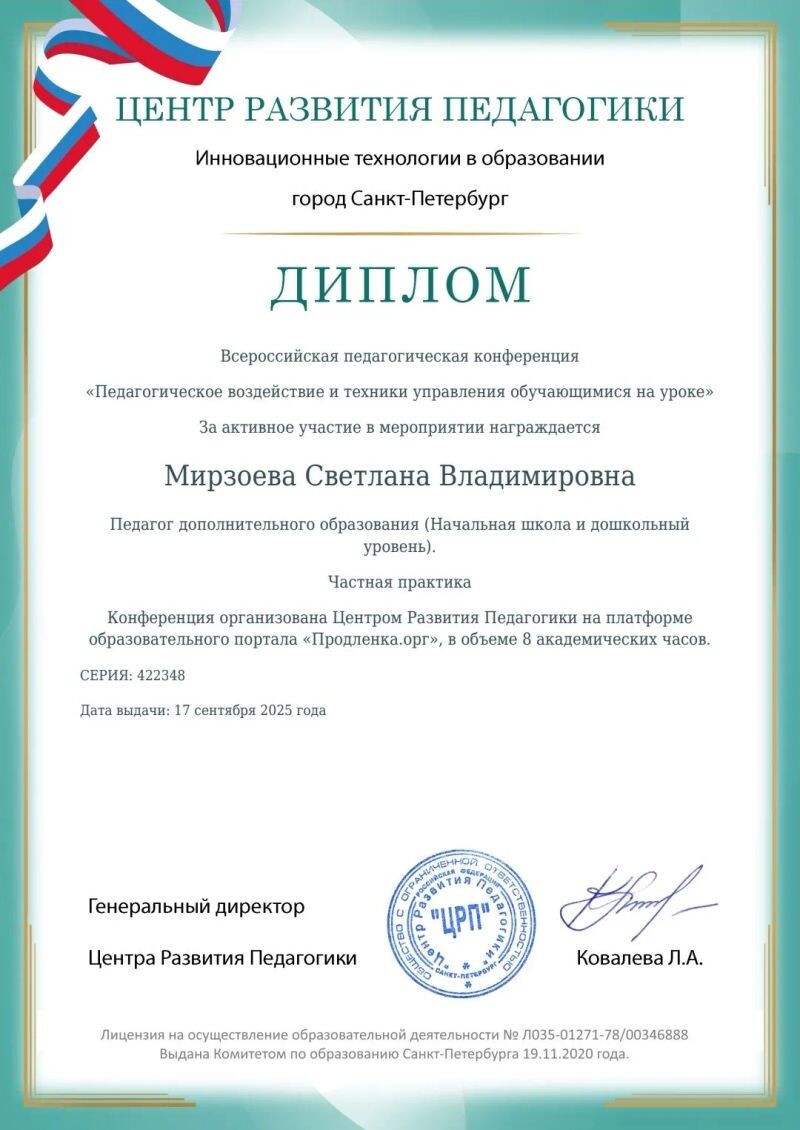 - Всероссийская педагогическая конференция "Педагогическое воздействие и техники управления обучающимися на уроке" (с 2025 г.).