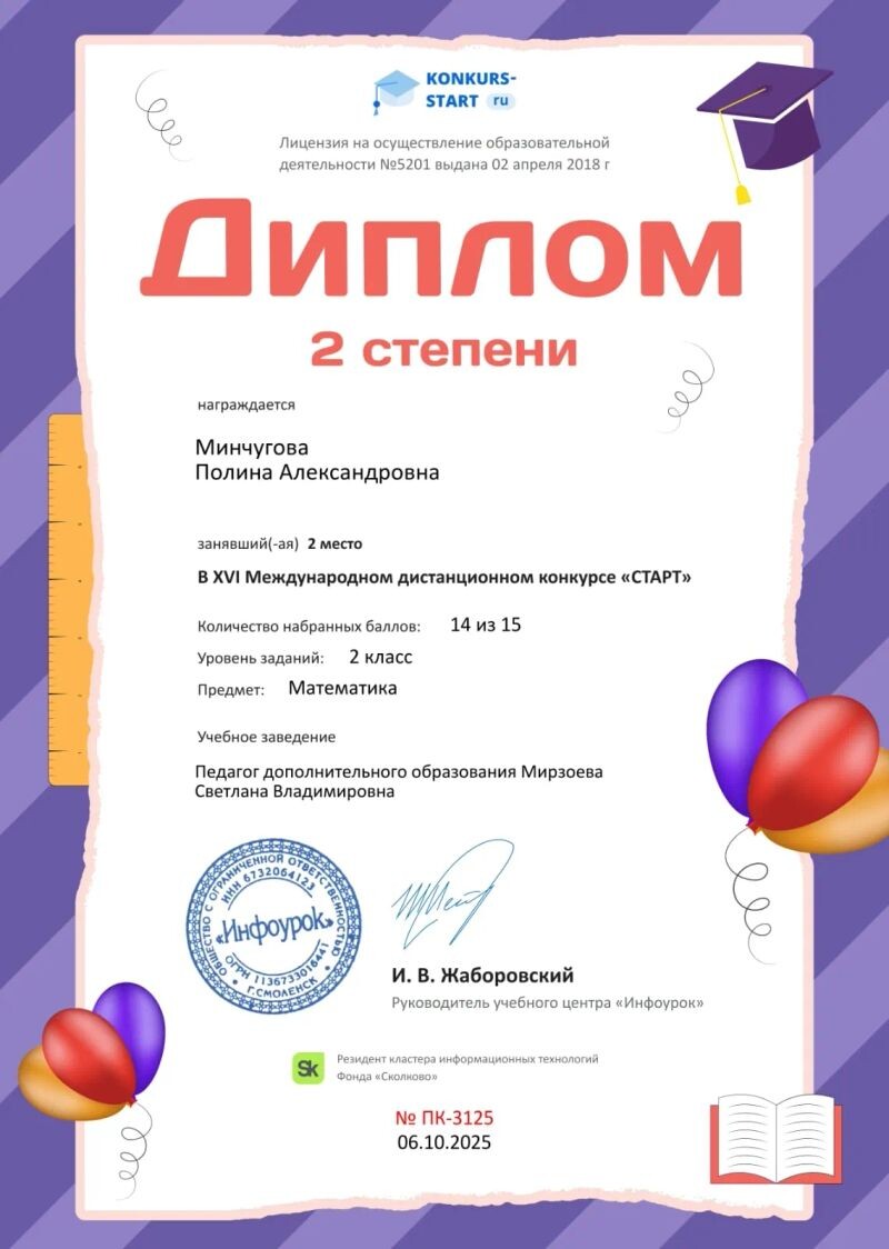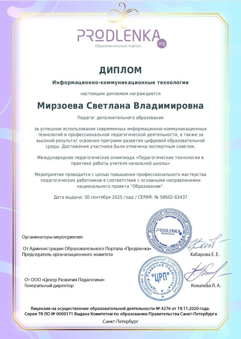 - Диплом информационно-коммуникационные технологии (с 2025 г.).