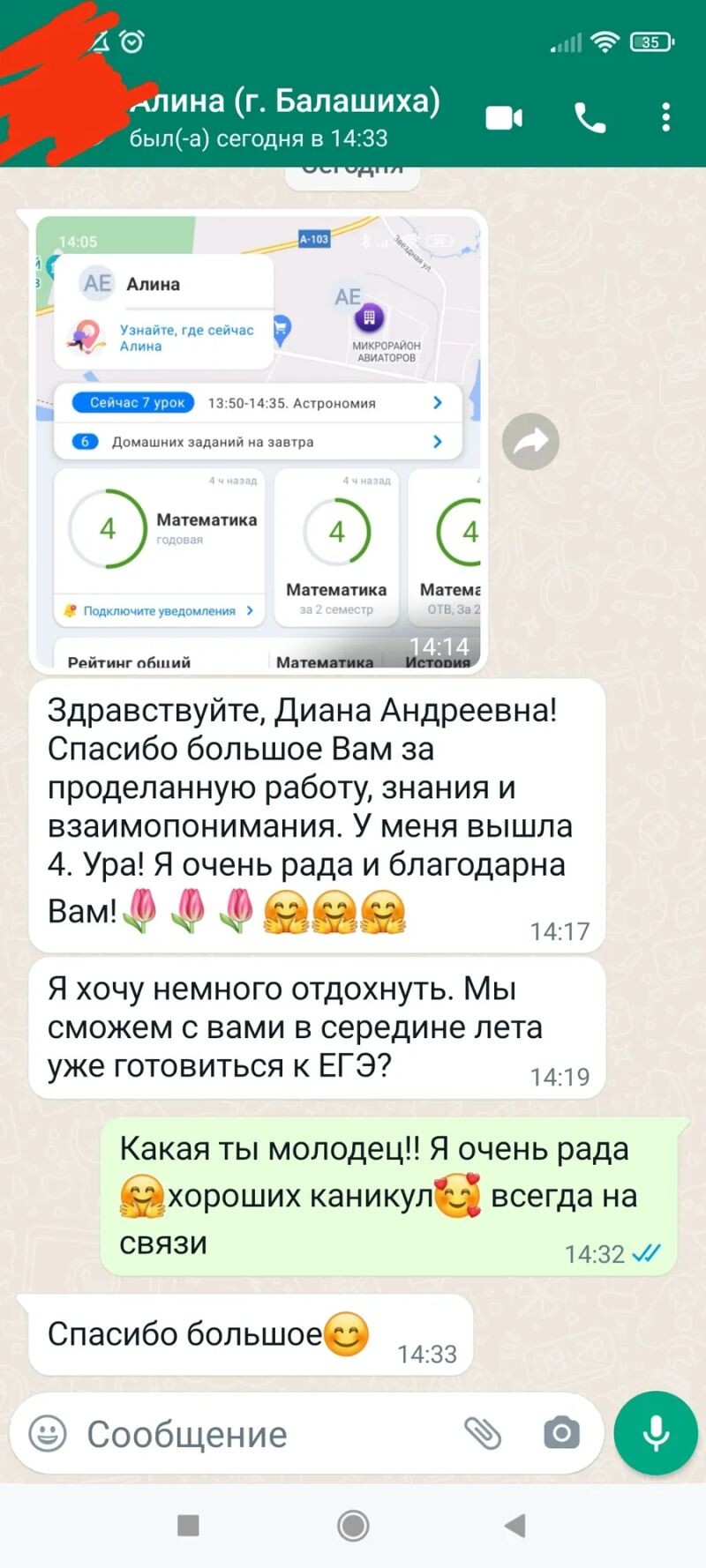 ► Связаться с Монченко Дианой Андреевной можно за пару минут. Нажмите на кнопку «Связаться с репетитором» и заполните короткую форму.