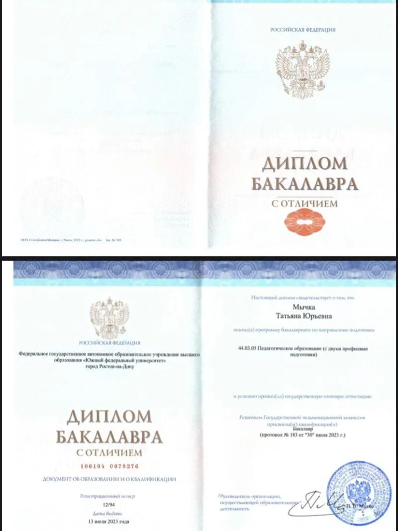 - Южный федеральный университет, программа «Педагогическое образование (с двумя профиля подготовки)», бакалавр, 2018–2023 гг.