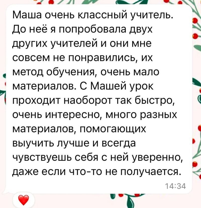 Мы уточним несколько деталей, после чего репетитор получит вашу заявку и свяжется с вами для уточнения деталей.