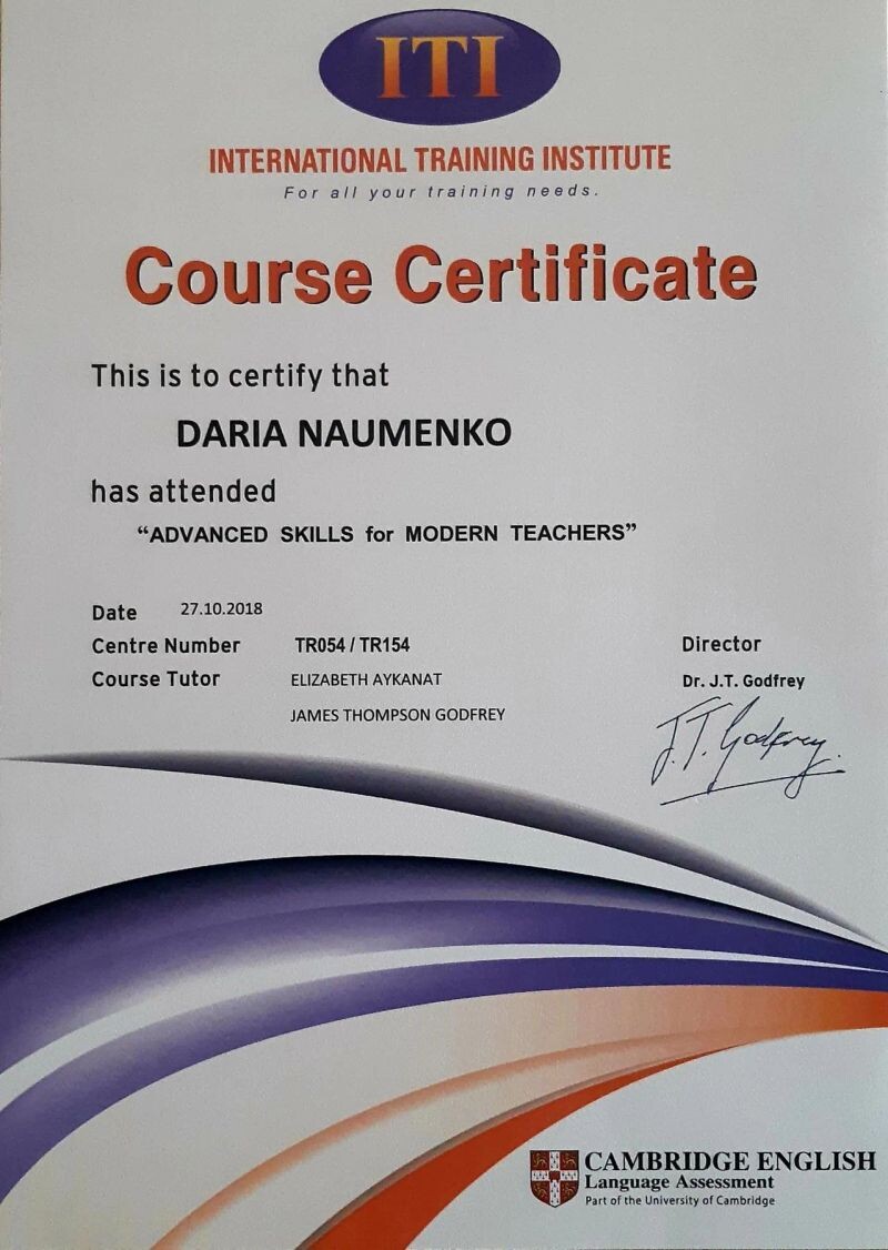 - ITI, «Advanced skills for modern teachers», 2018 г.