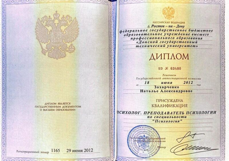 - ДГТУ, психолог, преподаватель психологии, 2007–2012 гг.