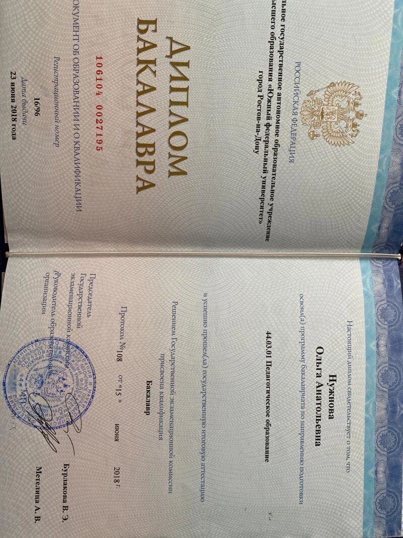 - ЮФУ, учитель химии и биологии, 2013–2018 гг.