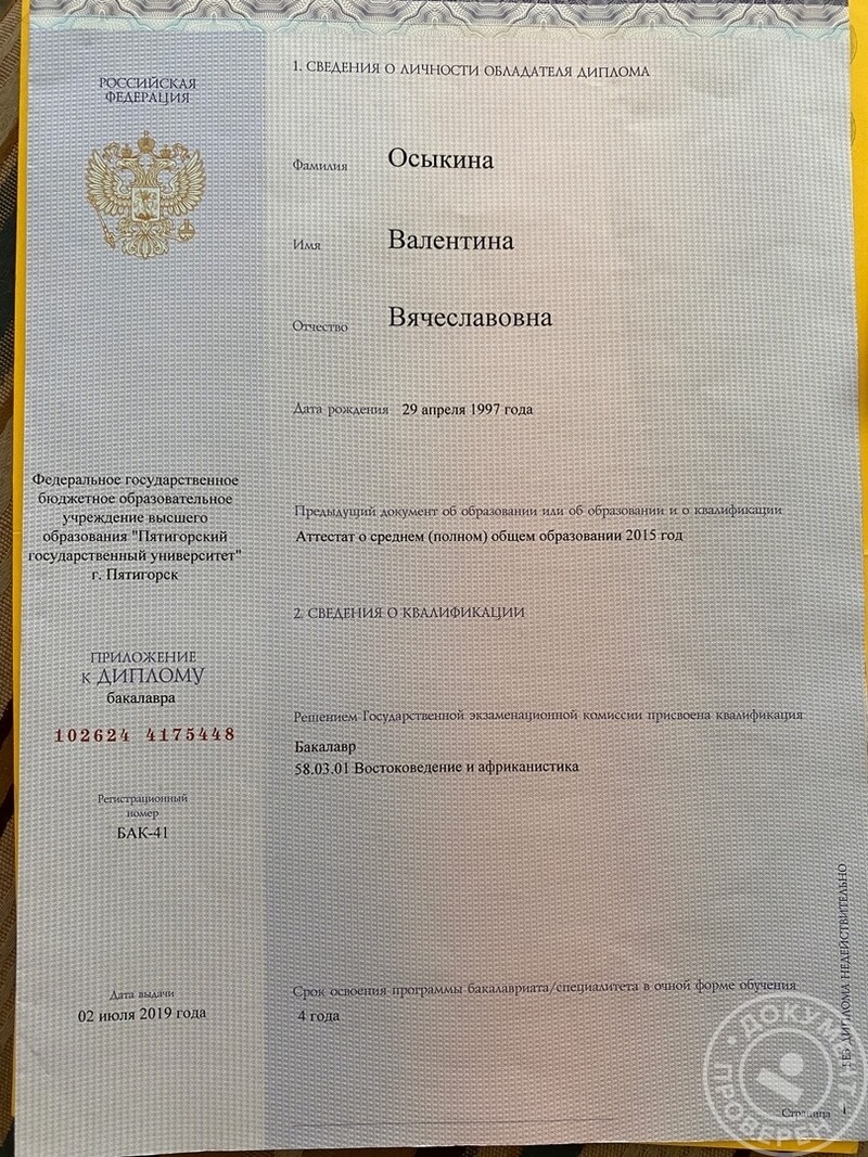 - Пятигорский государственный университет, Высшая школа управления, востоковедение и африканистика, 2015–2019 гг.