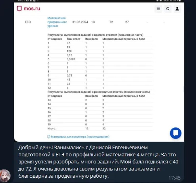 Ребёнок очень доволен занятиями, ему все нравится, а это главное. Своего репетитора мы нашли🤗. Спасибо за занятия♥️
