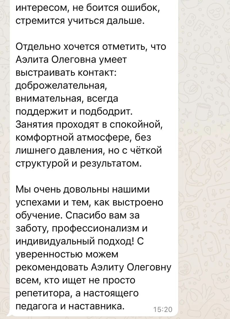 ► Связаться с Овсянниковой Аэлитой Олеговной можно за пару минут. Нажмите на кнопку «Связаться с репетитором» и заполните короткую форму.