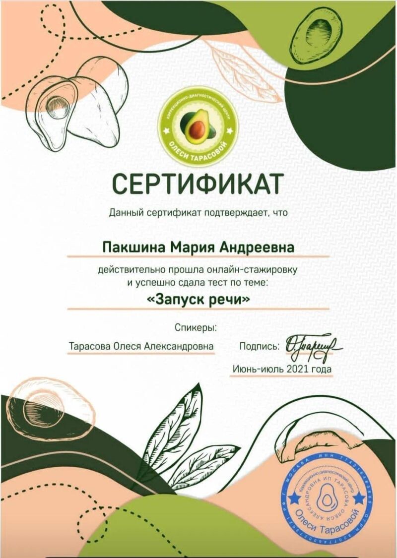 - ЧОУ ДПО «Логопед-Профи», нейродиагностика и нейростимуляция сенсомоторного и интеллектуального базиса речи, 2021 г.