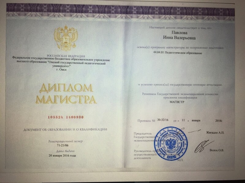 - ОмГПУ, педагогическое образование, магистр, 2014–2016 гг.