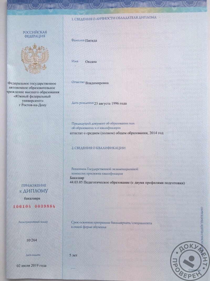- Южный Федеральный Университет, 2014–2019 гг.