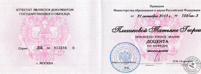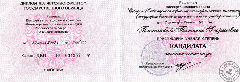 - Кандидат экономических наук, 2006 г.