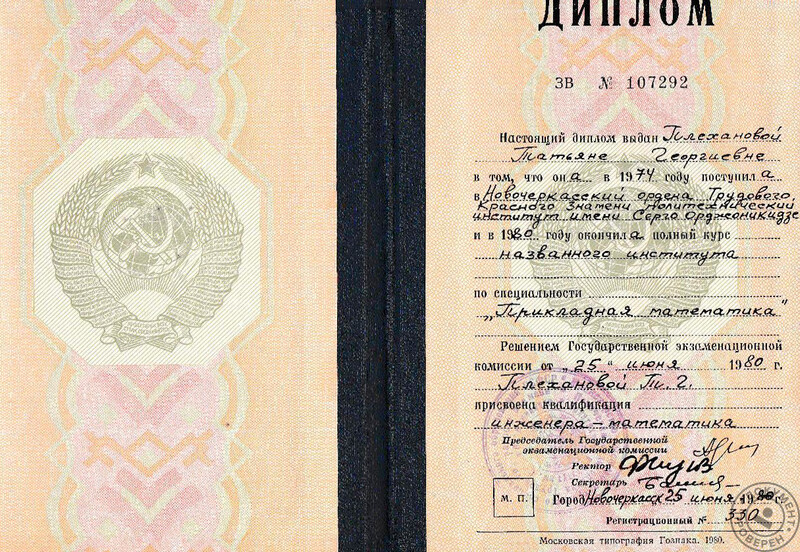 - Окончила Новочеркасский политехнический институт, специальность – прикладная математика, 1980 г.