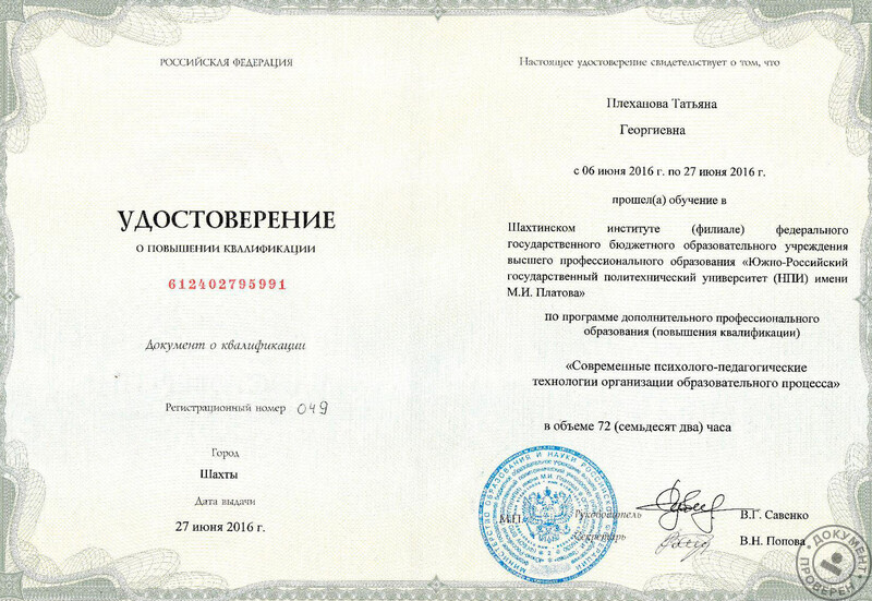 Отзывы о Плехановой Татьяне Георгиевне