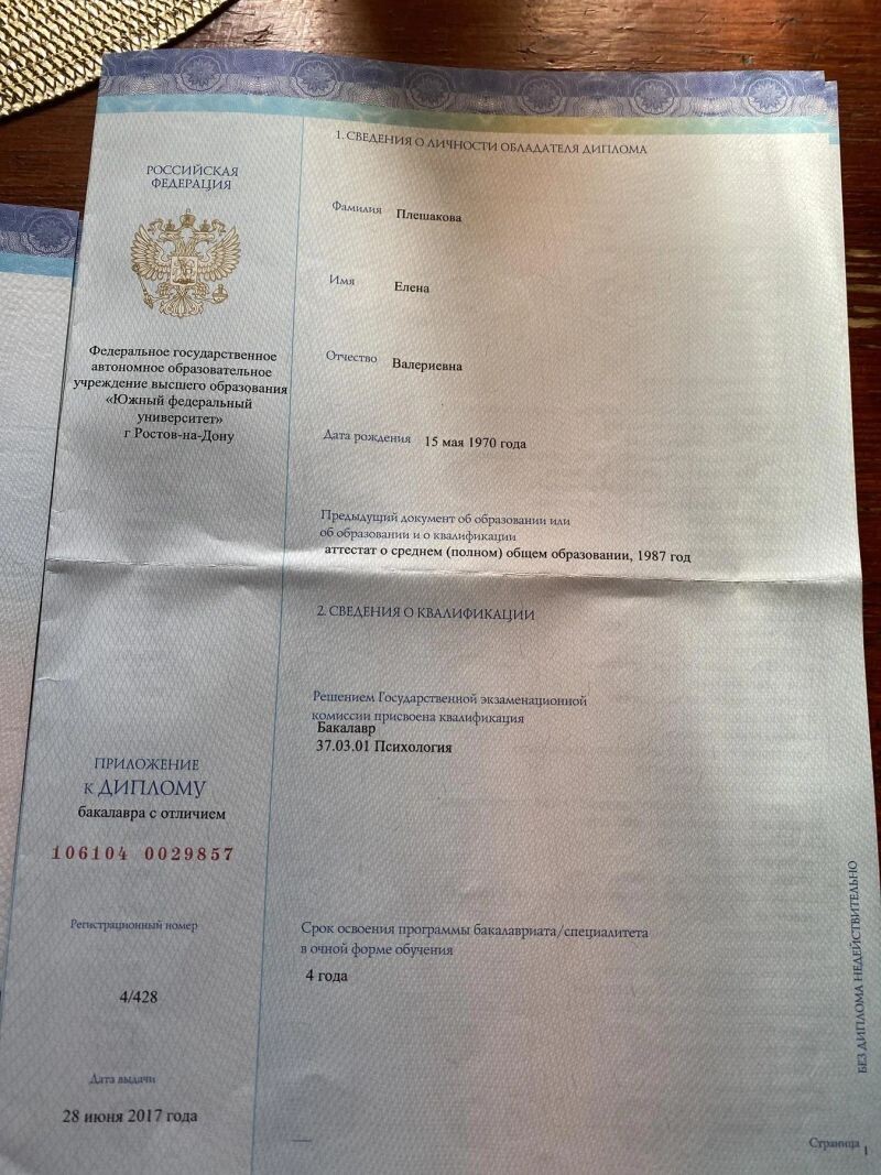 - ЮФУ, психология, бакалавр, 2013–2017 гг.