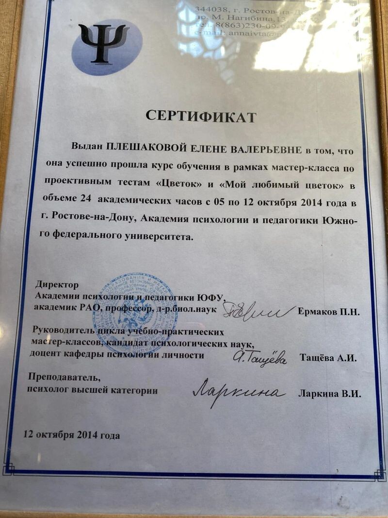 - ЮФУ, Академия психологии и педагогики, мастер-класс по проективным тестам, 2014 г.