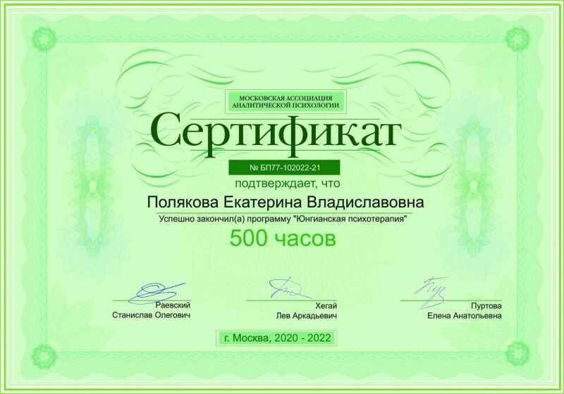 - МААП, программа «Юнгианская психотерапия», 2020–2022 гг.